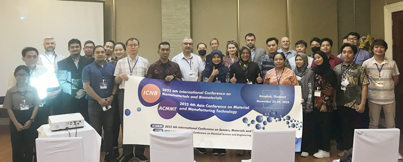 2022 6th International Conference on Nanomaterials and Biomaterials (ICNB 2022) was successfully held in Bangkok, Thailand & Online during November 22-24, 2022. The conference program consists of 4 keynote speeches, and 8 oral sessions. Participants from Japan, Thailand, Singapore, China, Indonesia, Malaysia, Philippines, Republic of Korea, Viet Nam, UAE, India, South Africa, Czech Republic, Sweden, Turkey, Peru, Algeria, Brazil presented at the cofnerence and made their wonderful speeches. Thank you all for your participation!